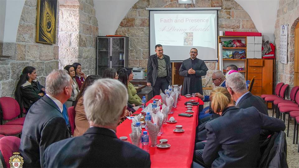 Avant le début de la célébration, le père Remon Haddad, curé de la paroisse d’Aboud, a accueilli la délégation de la Lieutenance belge : M. Damien de Laminne, Mme Véronique Massimo et M. Fabrizio Massimo. Ils ont rencontré le conseil paroissial et visité la paroisse ainsi que l’école, ce qui leur a permis de mieux comprendre leur rôle essentiel au service de la communauté d’Aboud. Cette visite leur a également offert l’occasion de découvrir plus en profondeur la richesse historique du village et la vie quotidienne de sa communauté paroissiale.